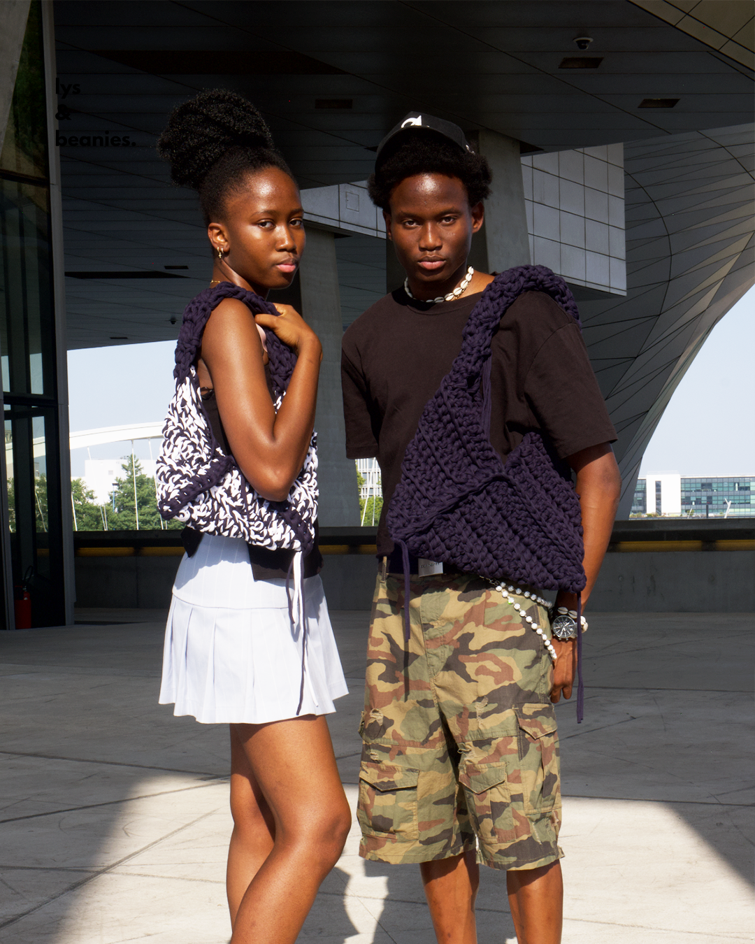 Alliez style et engagement écoresponsable avec ce shoulder bag artisanal, réalisé en fil de T-shirts recyclés.